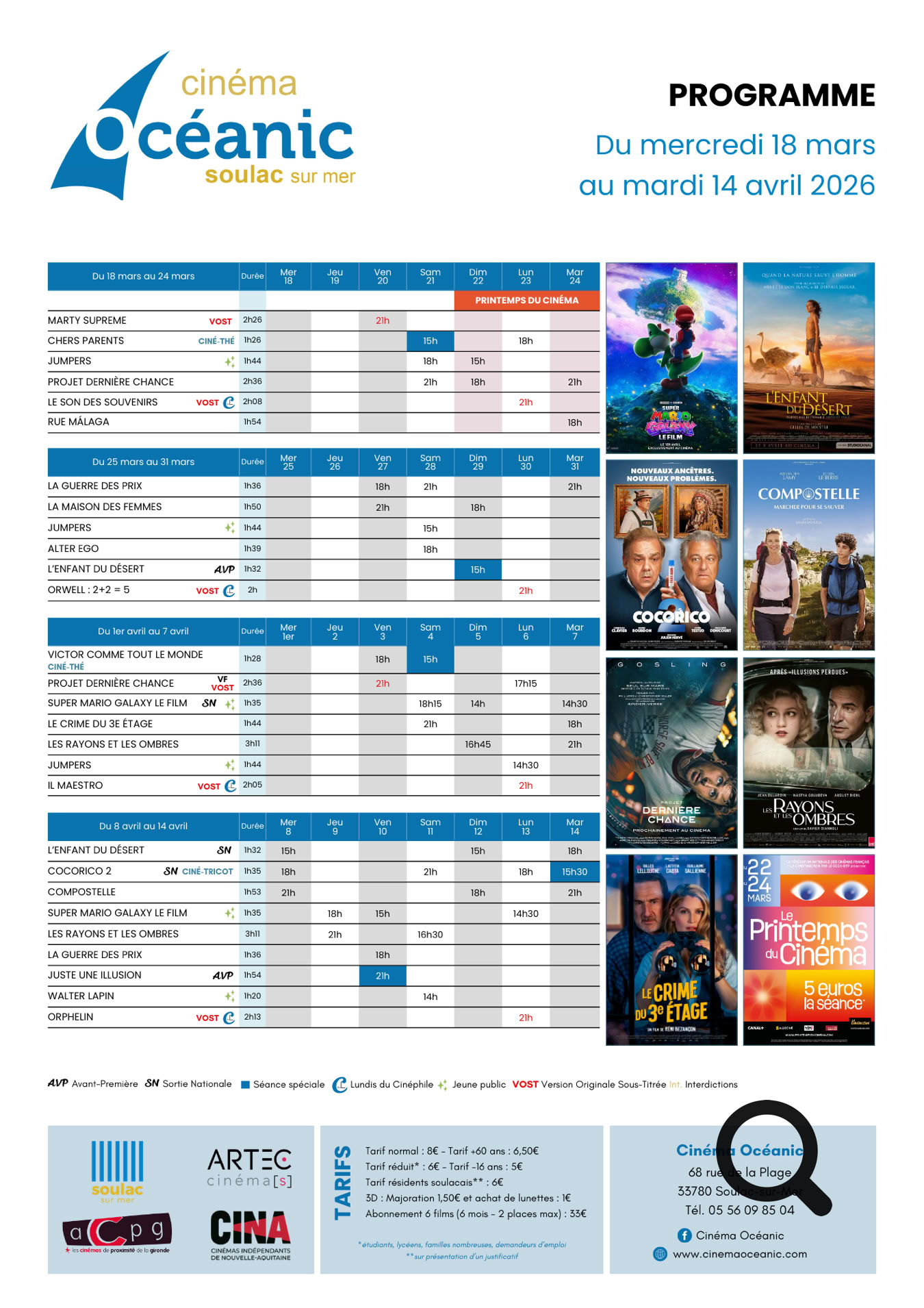 Que vous veniez en bateau, en voiture, à moto, à vélo, à pied, à la nage… le Cinéma Océanic vous accueille tous les jours au 68 Rue de la Plage à Soulac-sur-Mer