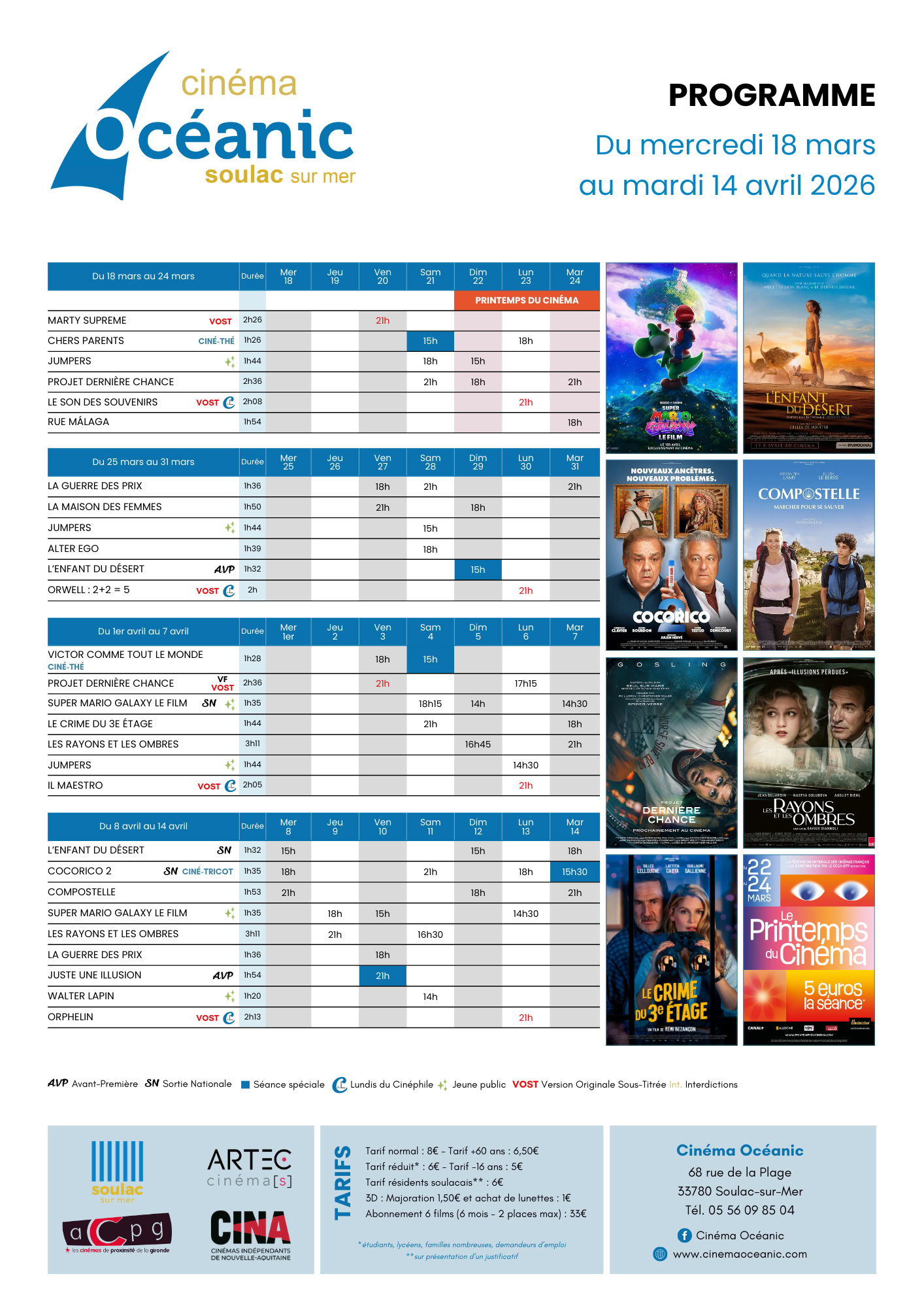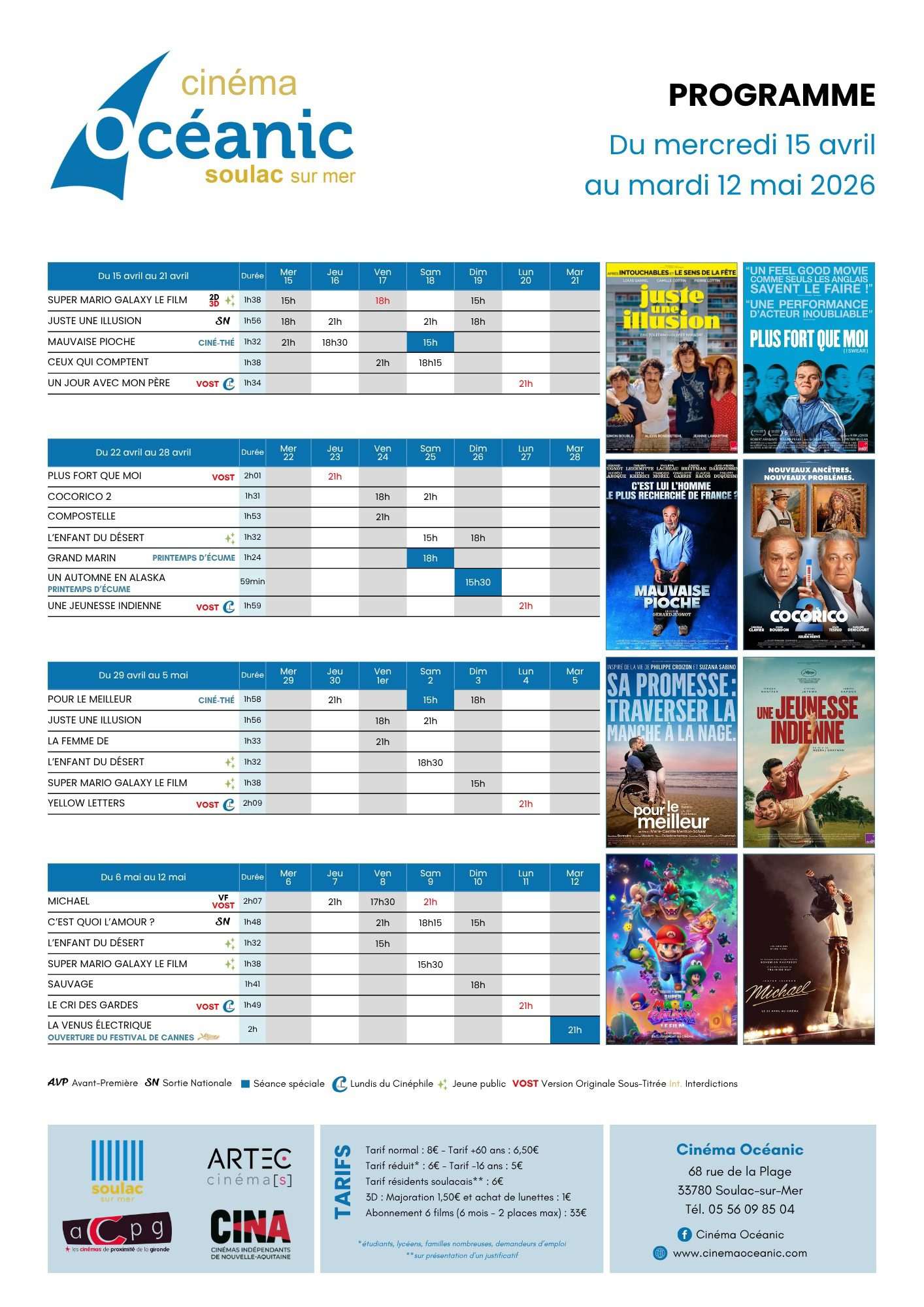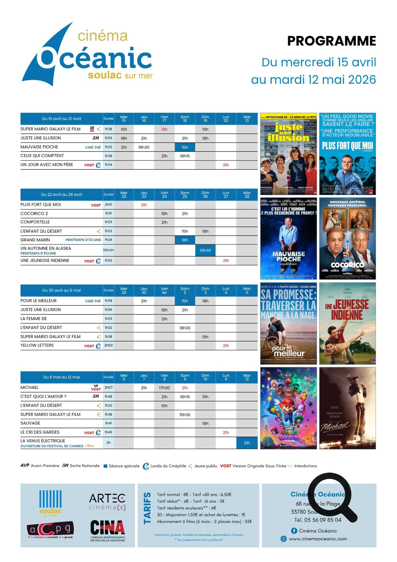 Que vous veniez en bateau, en voiture, à moto, à vélo, à pied, à la nage… le Cinéma Océanic vous accueille tous les jours au 68 Rue de la Plage à Soulac-sur-Mer